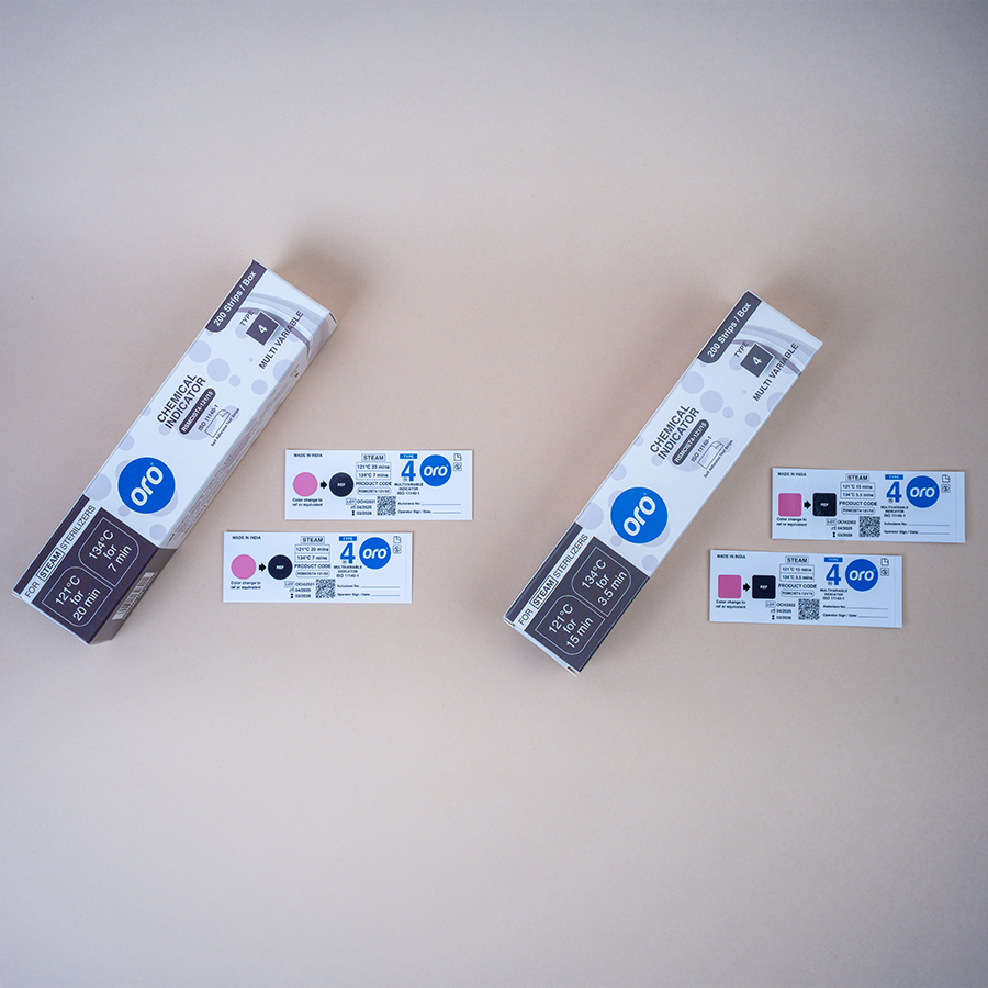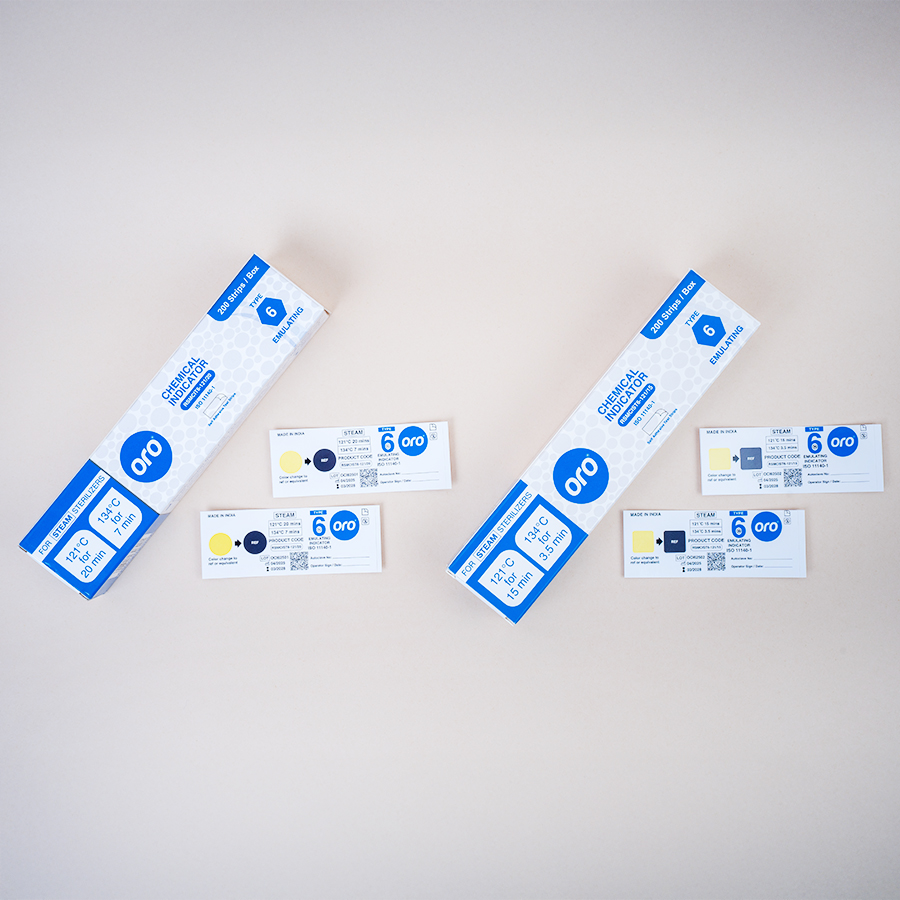 ORO Chemical Indicator Strips are precision-designed to ensure that critical sterilization parameters such as temperature, time, pressure, and chemical exposure have been met. These indicators provide quick, visual confirmation of effective sterilization and are fully compliant with ISO 11140-1 standards.